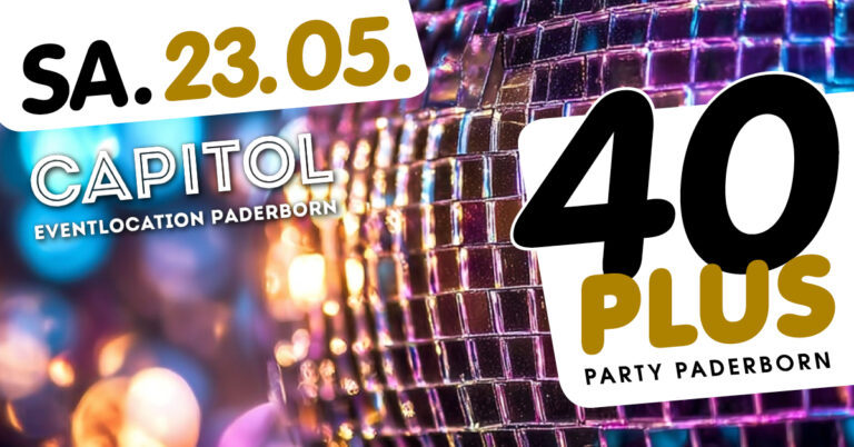 Am Samstag, den 23. Mai ab 21 Uhr, steigt die dritte große 40plus Party im Capitol Paderborn. Gemeinsam mit euch feiern wir eine unvergessliche Frühsommernacht.